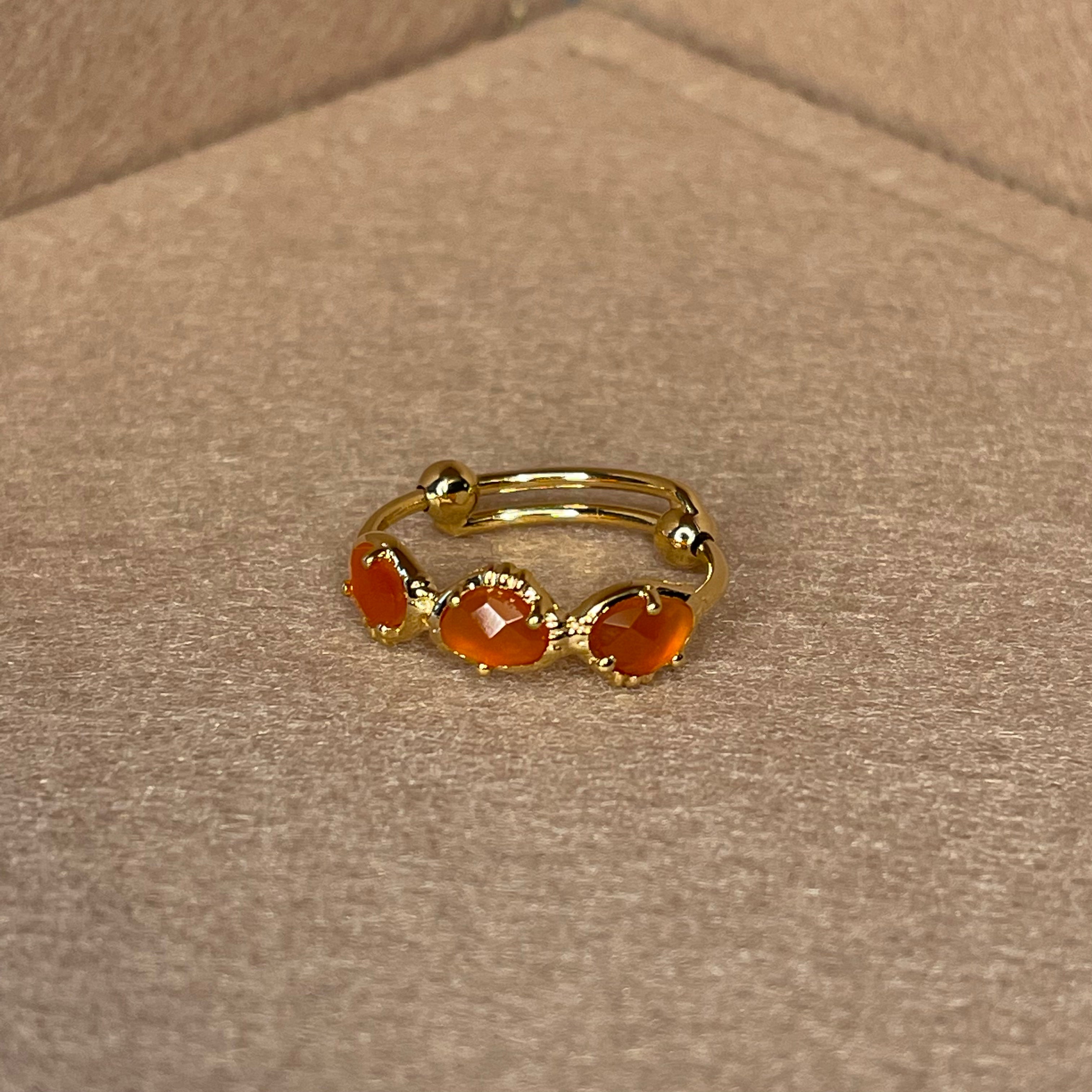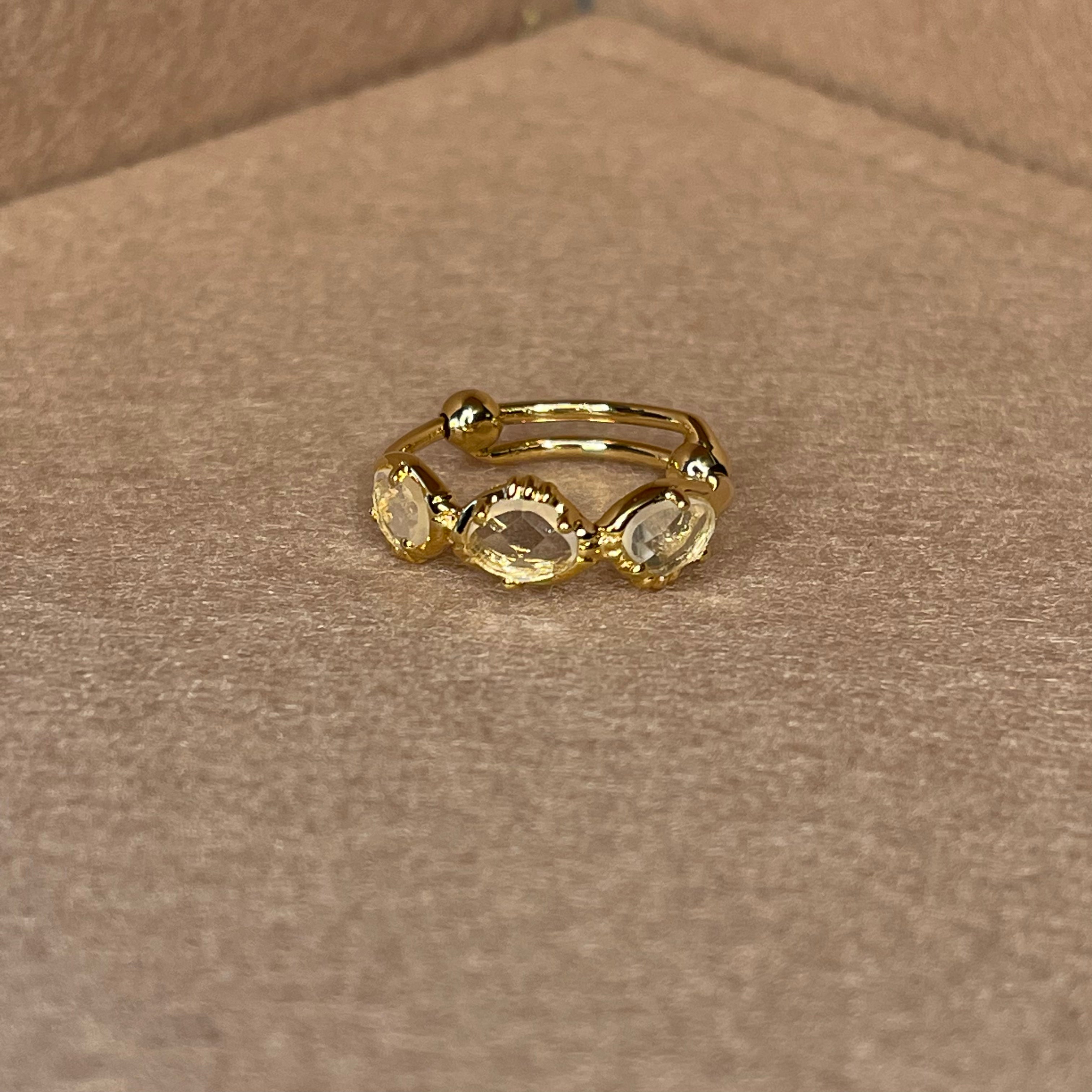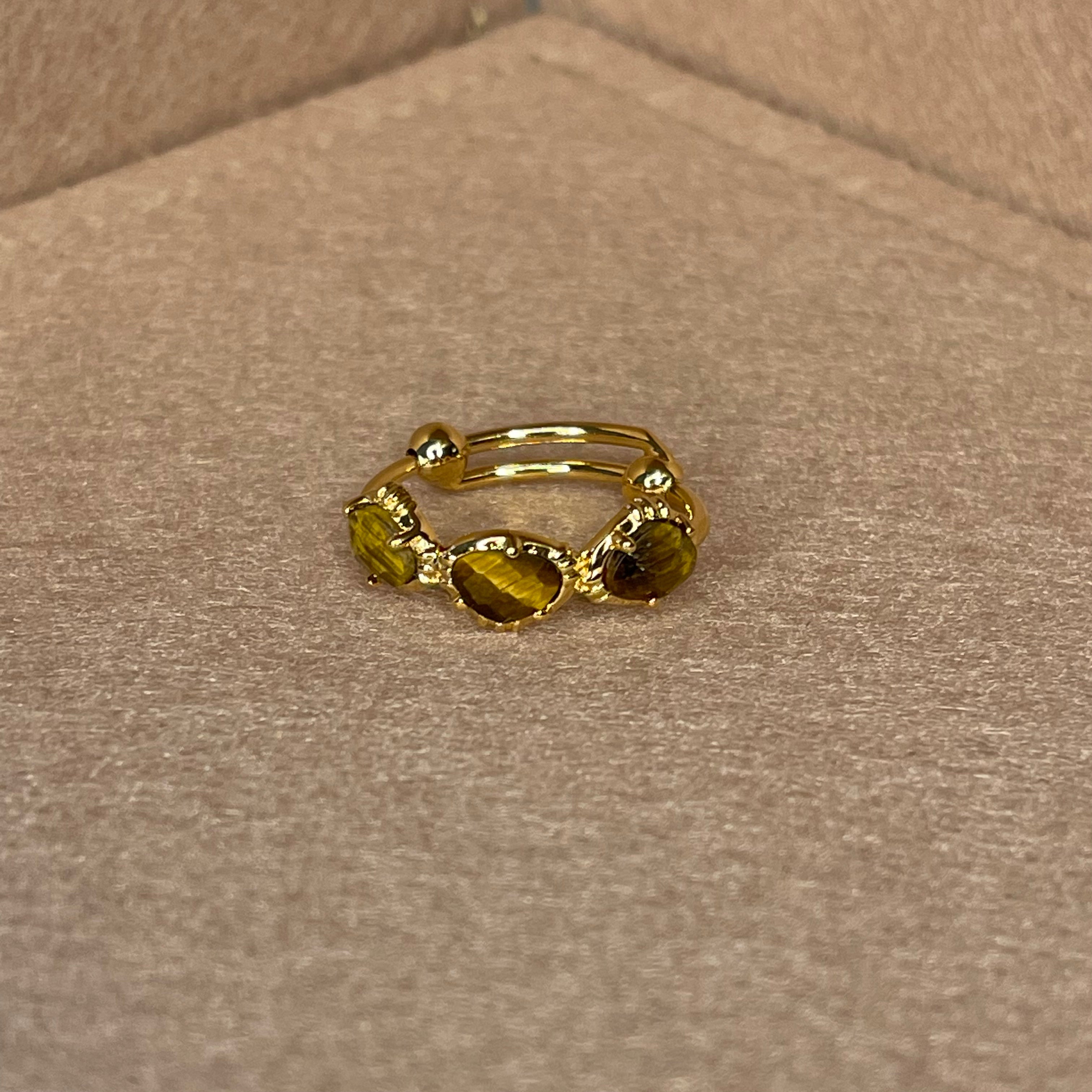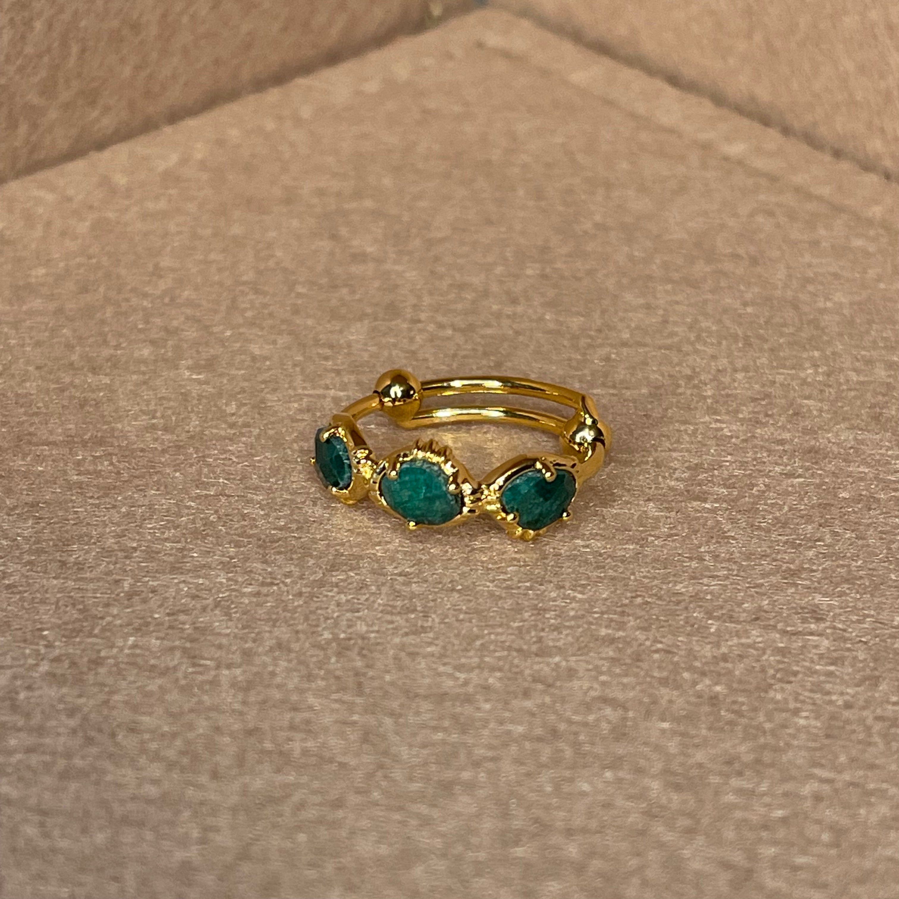 Bague 3 pierres semi précieuse, sertie en laiton plaqué or 18 carats