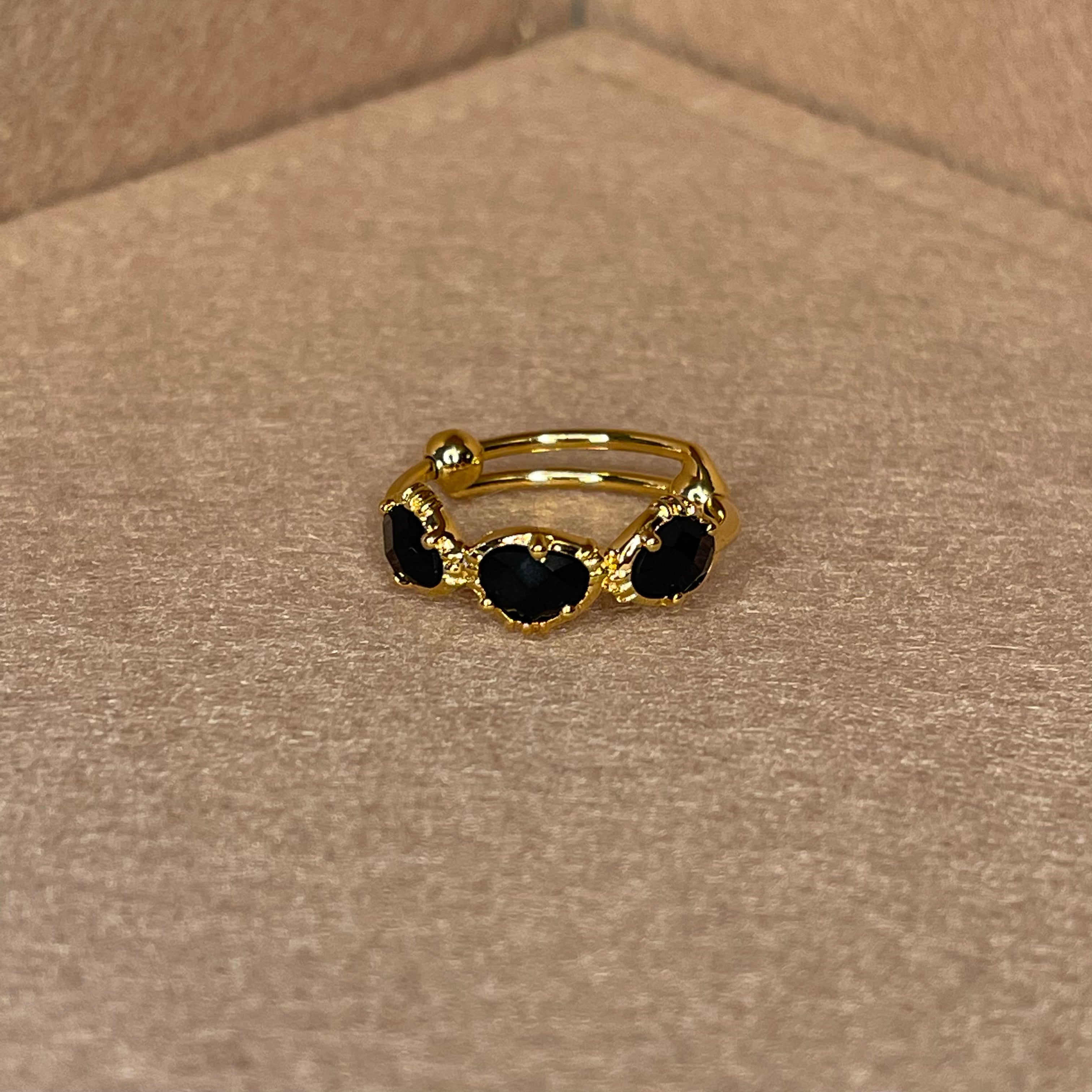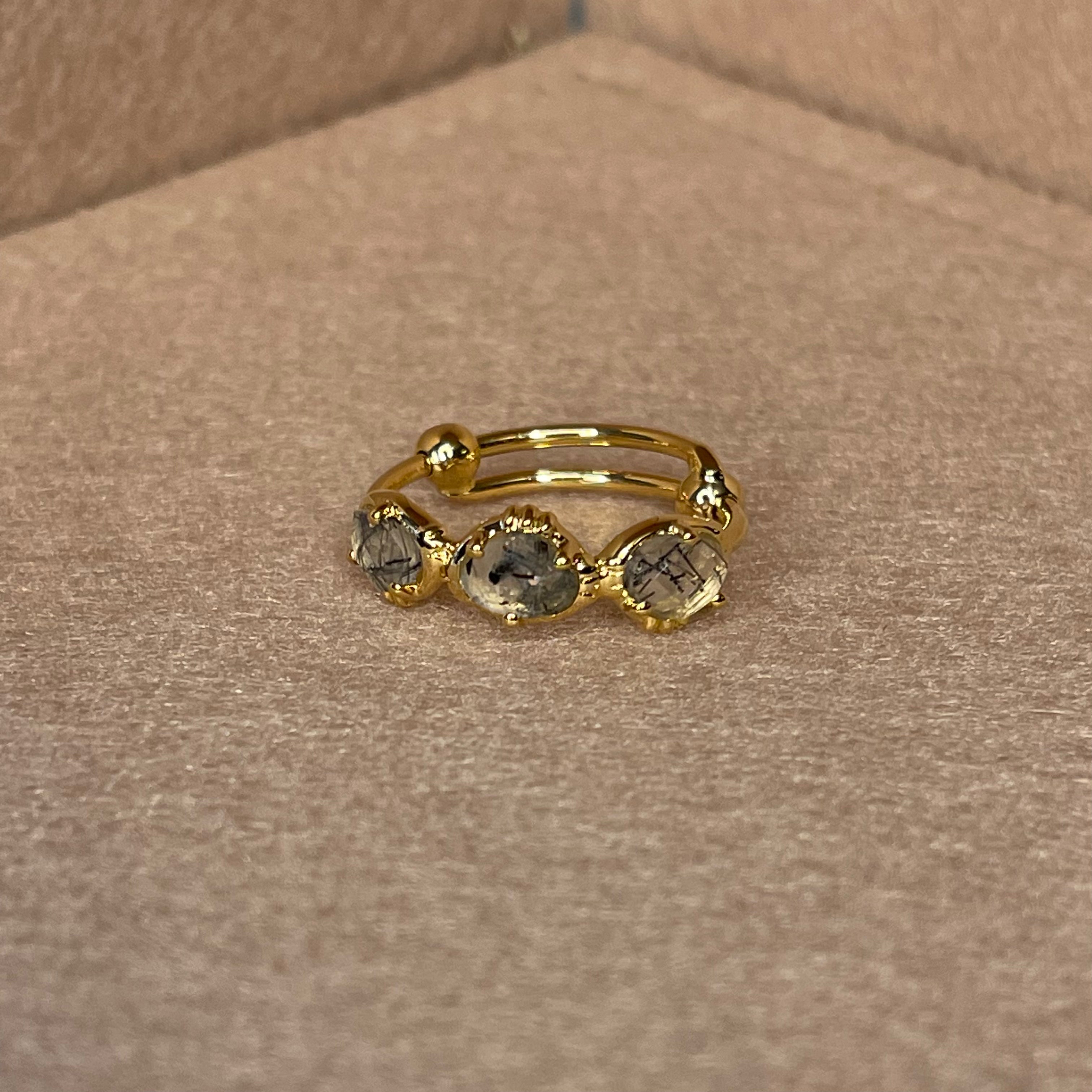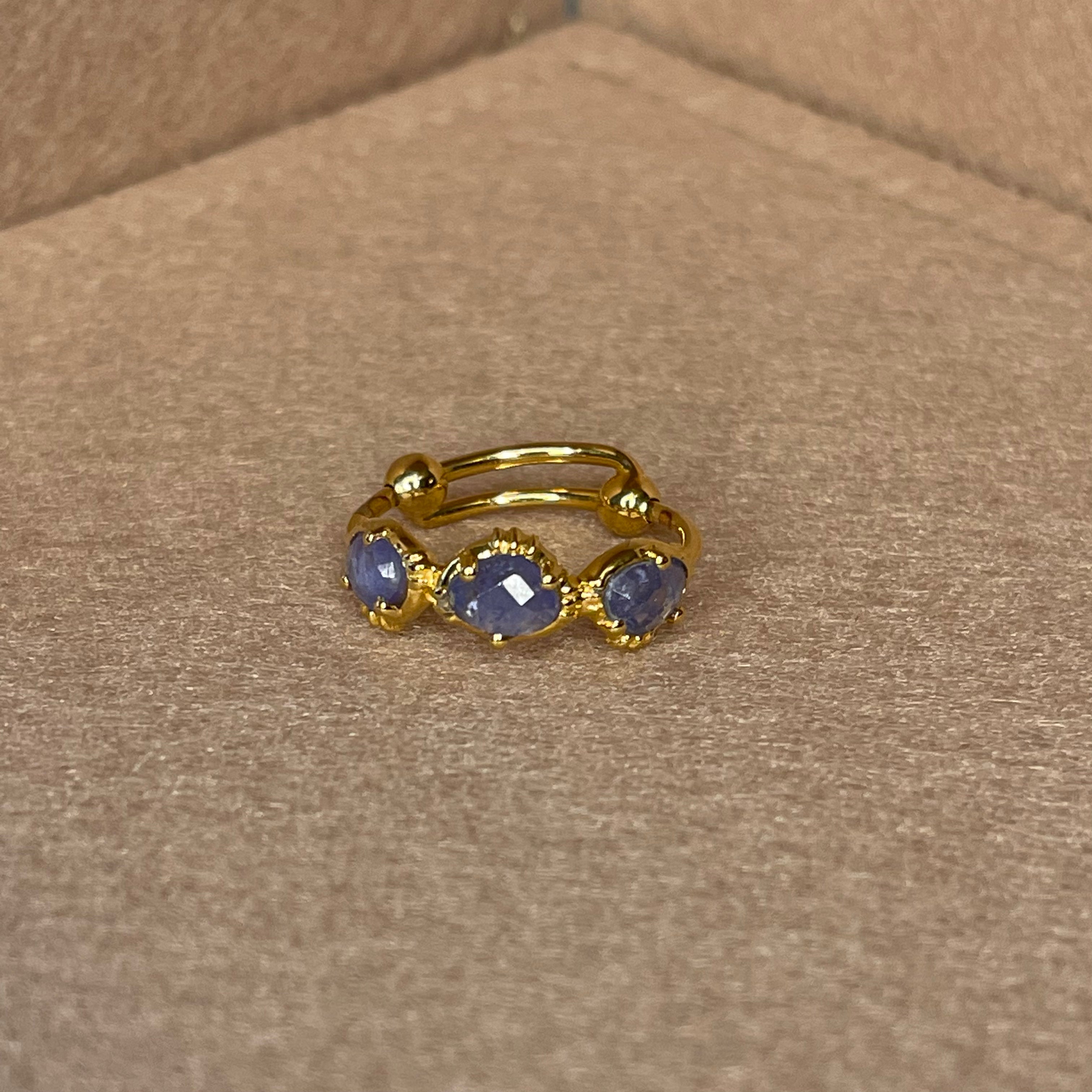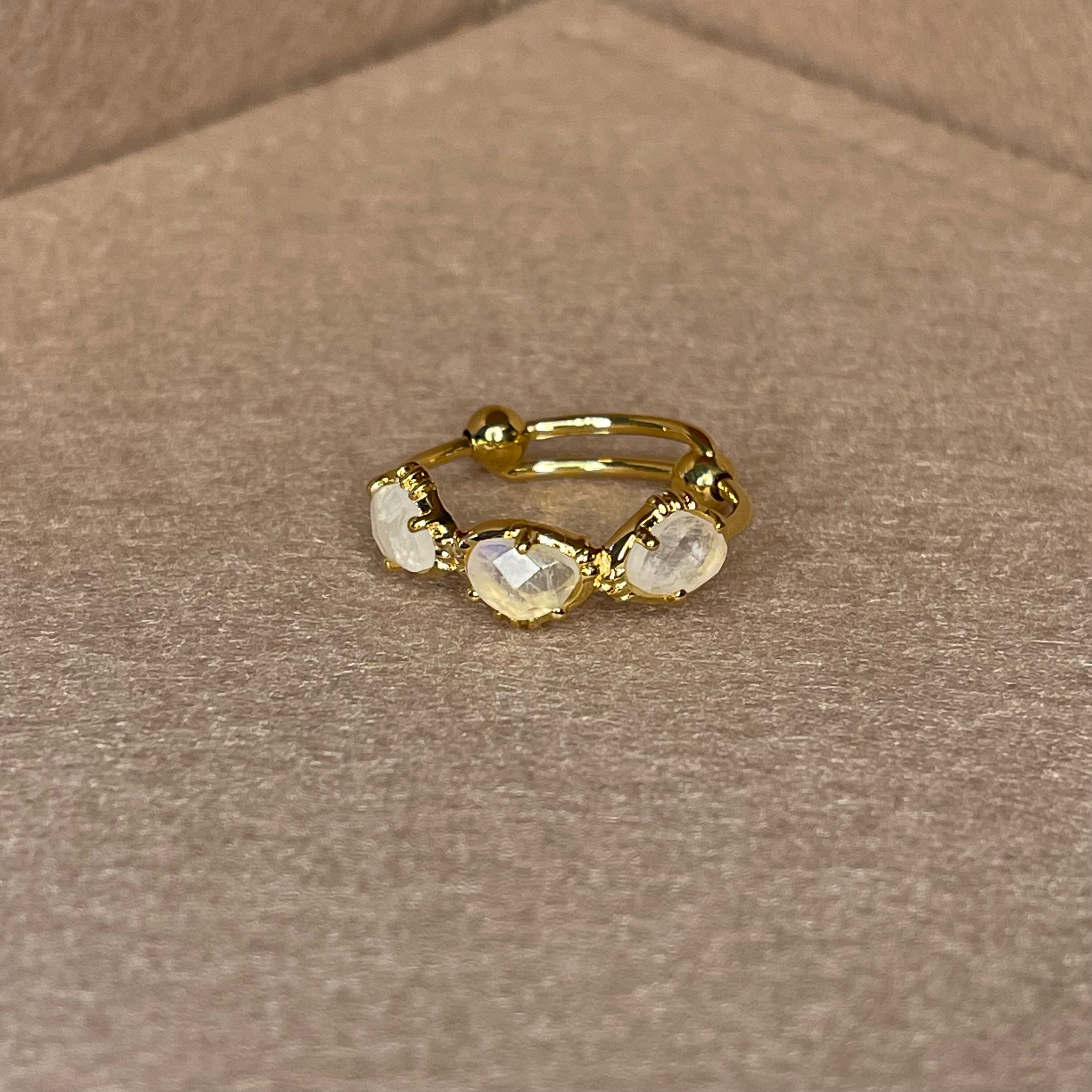 Bague 3 pierres semi précieuse, sertie en laiton plaqué or 18 carats