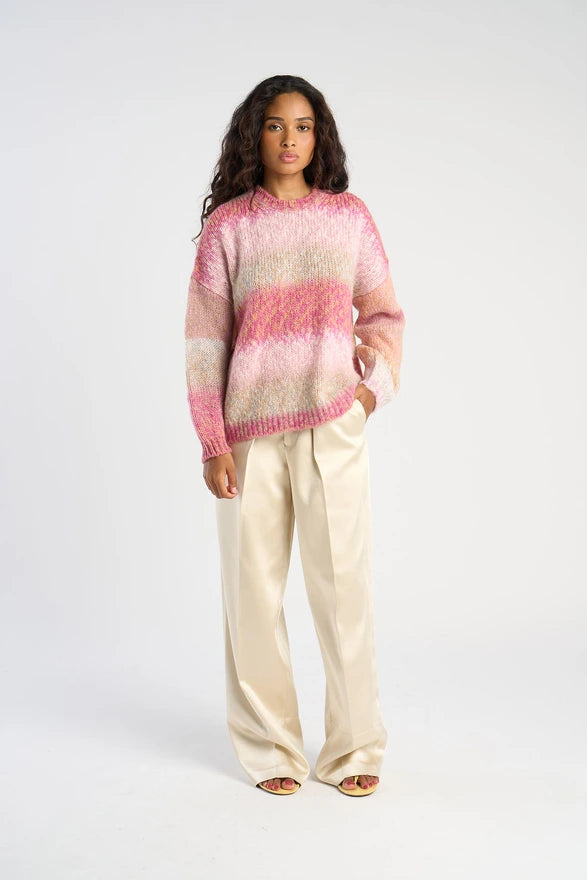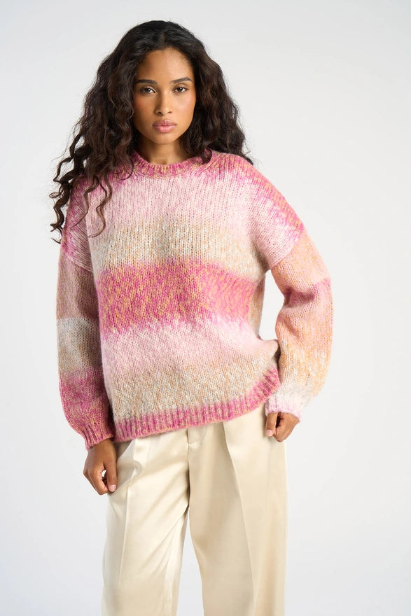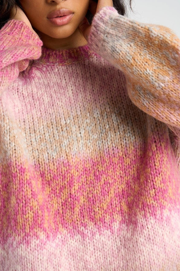 Notre pull col rond à manches longues et volume oversize a été tricoté en Italie dans un fil imprimé composé de Laine et d'Alpaga. Cette création est unique, ce pull est tout doux et pour longtemps ! Vous allez RAYONNER ! Nous vous conseillons de le prendre dans votre taille habituelle pour un look loose.