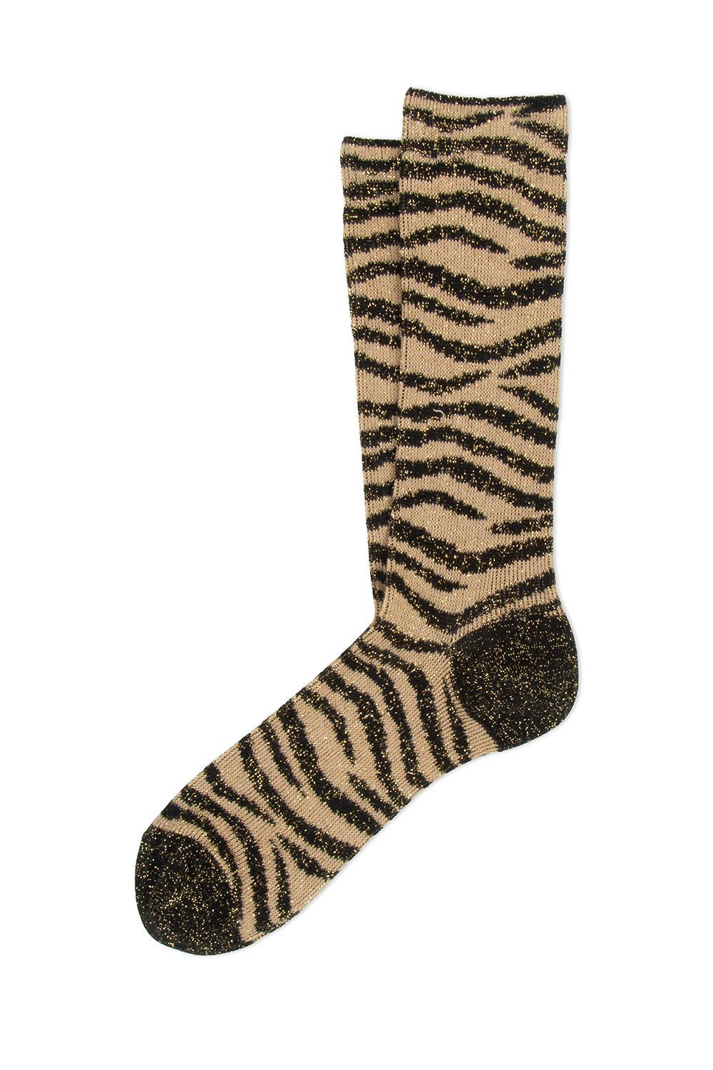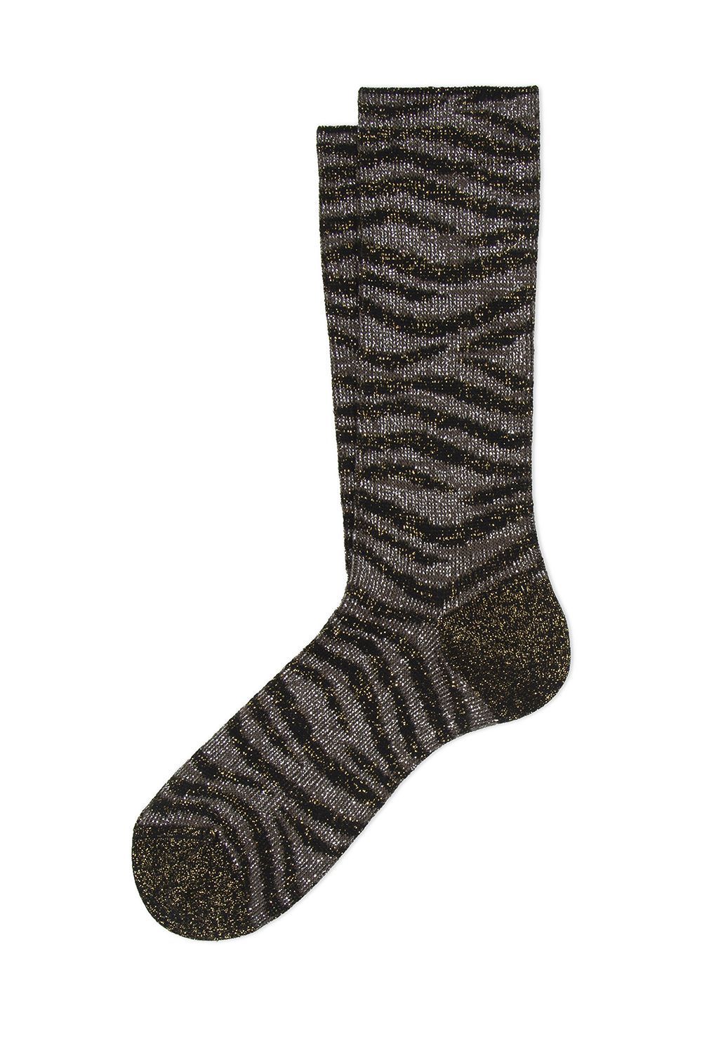 Chaussettes mi-hautes en coton lurex, motif zébré contrasté.Pointe et talon renforcés.